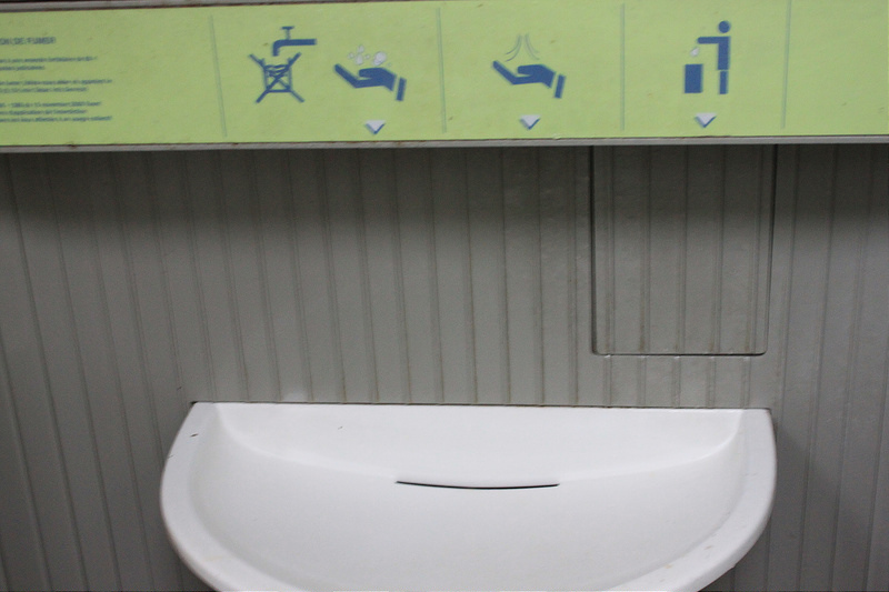 從左至右。洗手乳=>水=>烘手機=>丟擦手紙。