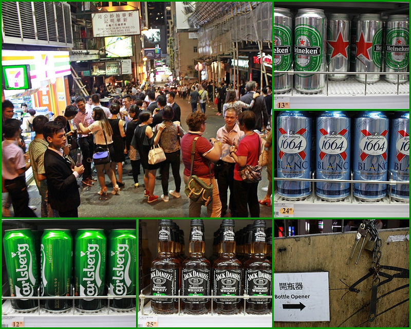 蘭桂坊一旁的超商,聚集了更多遊客及外籍人士。